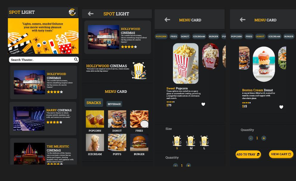 Spotlight is a convenient and user-friendly snacks menu app designed exclusively for movie theater-goers. This innovative app provides a seamless experience for movie enthusiasts to view, select, and place orders for their favorite directly from their mobile devices.